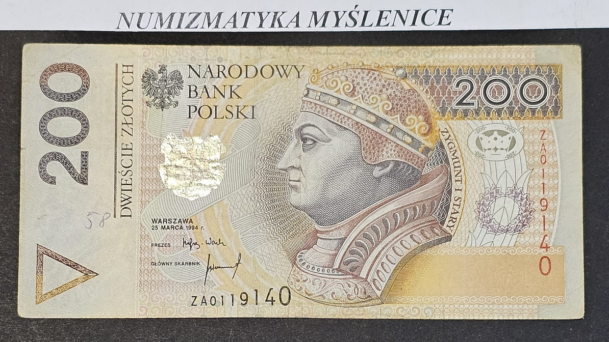 Banknot 200 zł 1994 r Rzadka seria zastępcza ZA 0119140