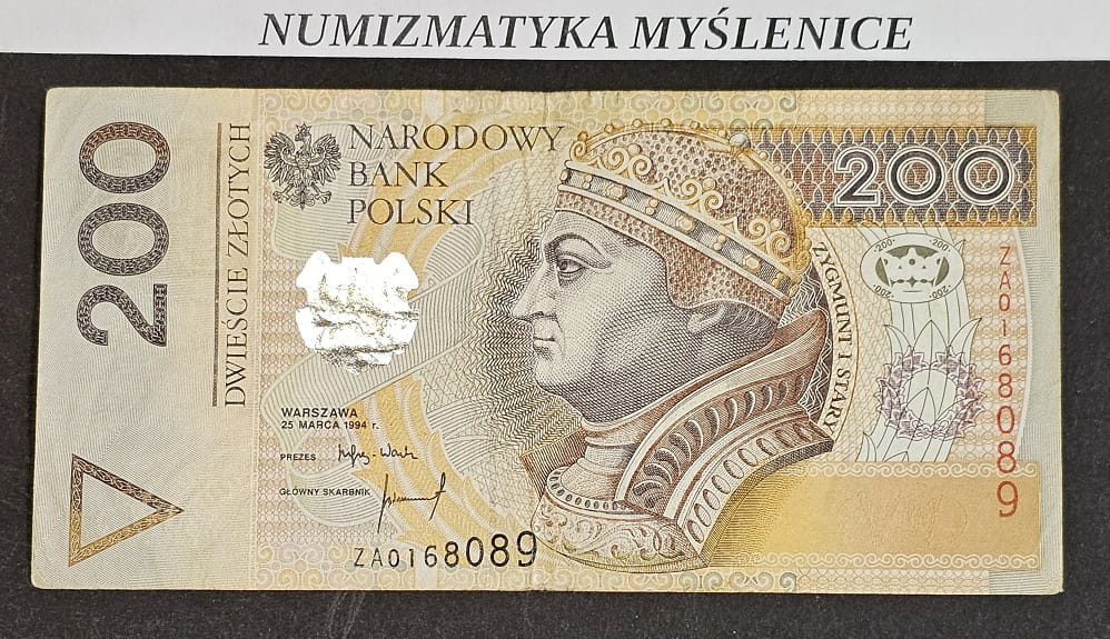 Banknot 200 zł 1994 Rzadkiej serii zastępczej ZA 0168089