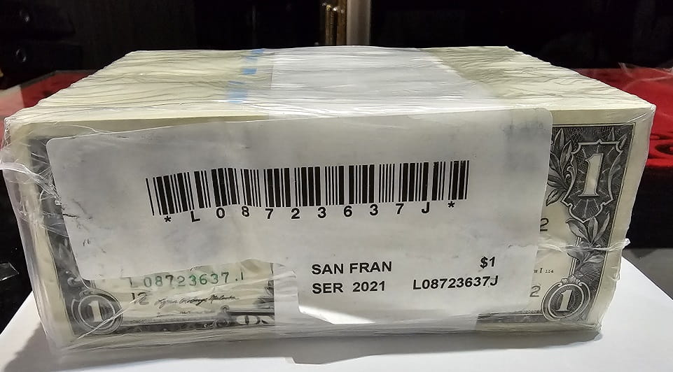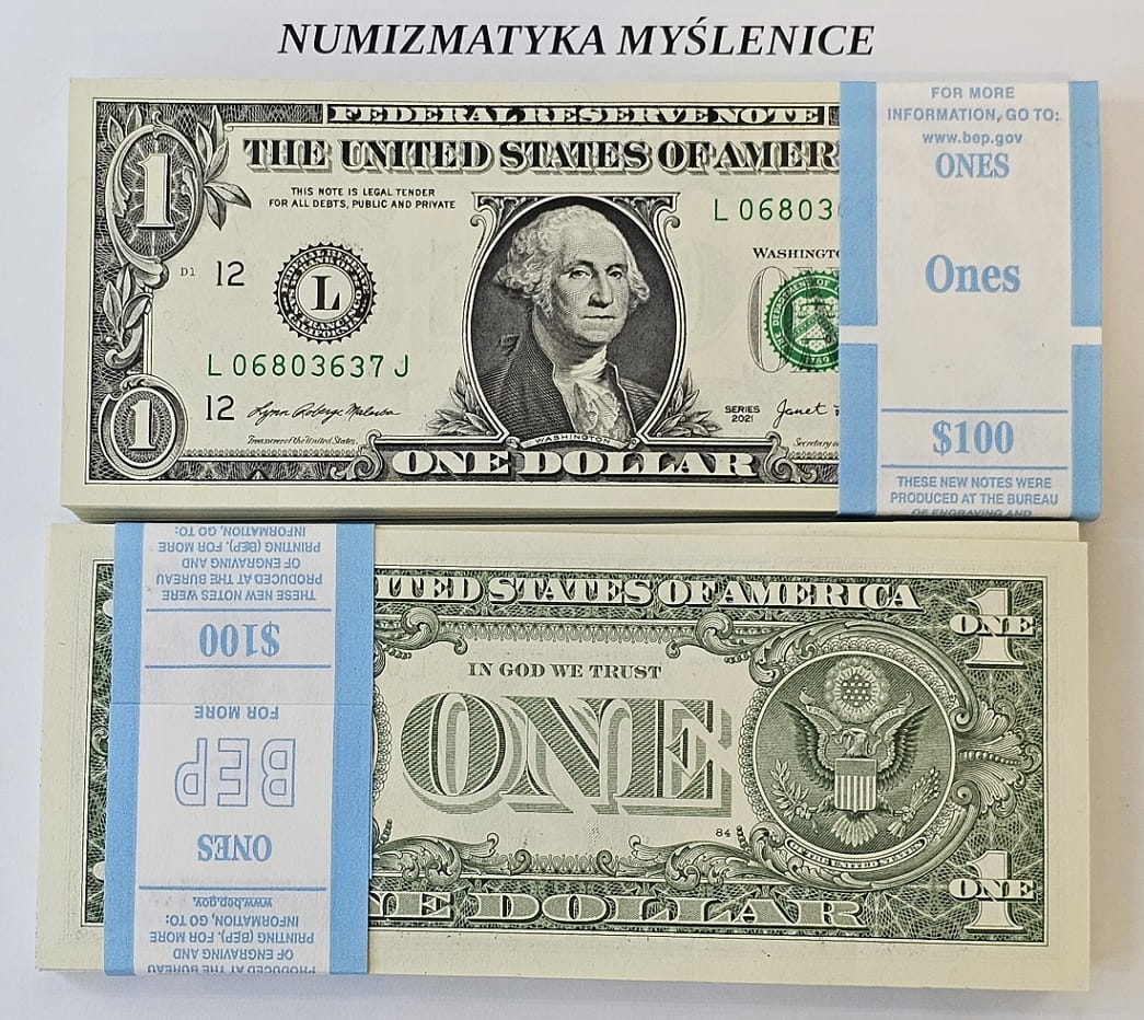 Paczka 100 szt - Banknoty jedno dolarowe 2021 r. Seria L BANK SAN FRANCISCO
