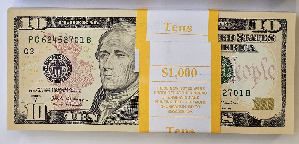 10 Dolarów x 100 szt. Paczka 2017A Seria PC -/ BANK OF PHILADELPHIA/