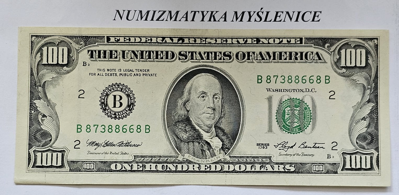 100 DOLARÓW 1993 SER. B 87388668 - ŁADNY STAN -