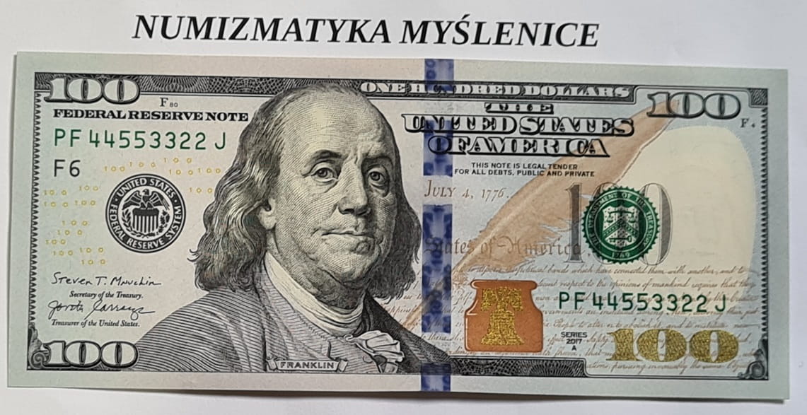 100 DOLARÓW SERIA 2017 A / PF 44553322 J / SUPER NUMER