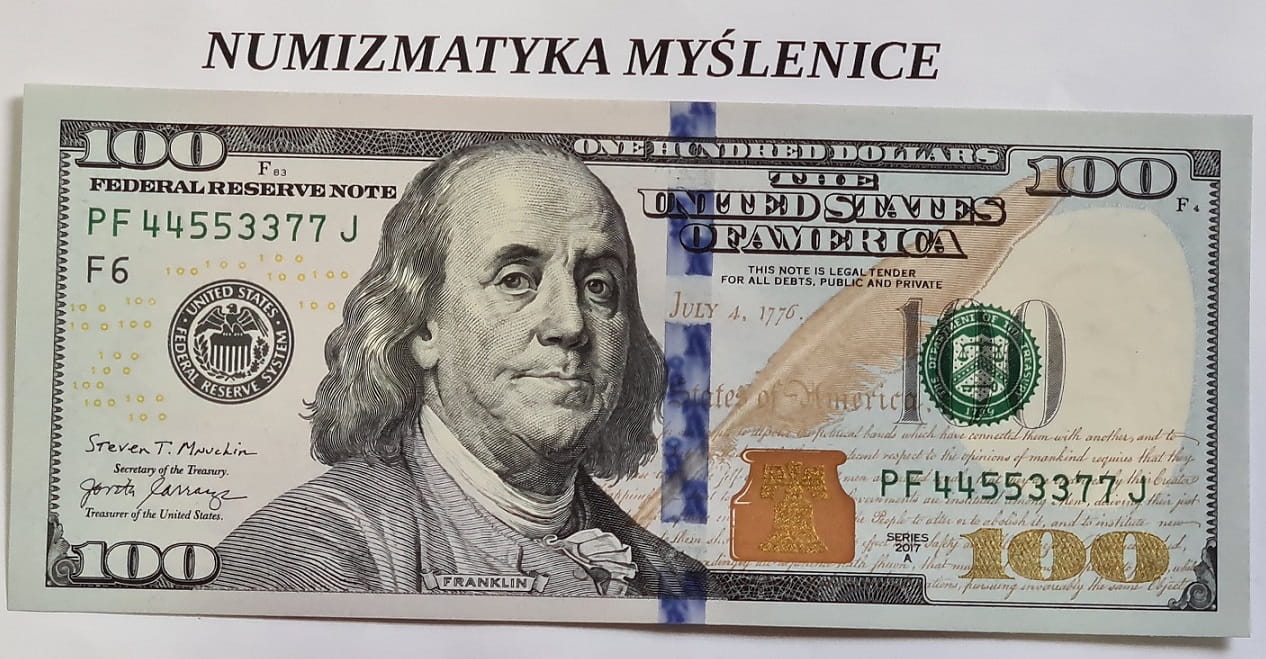 100 DOLARÓW SERIA 2017 A PF 44553377 J SUPER NUMER