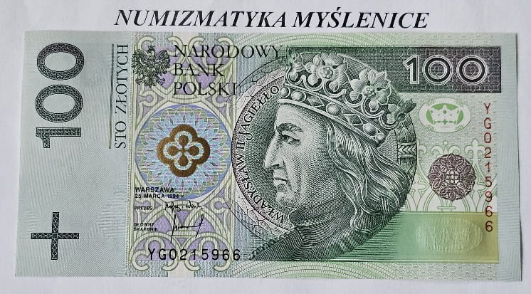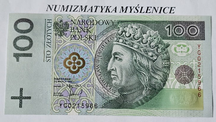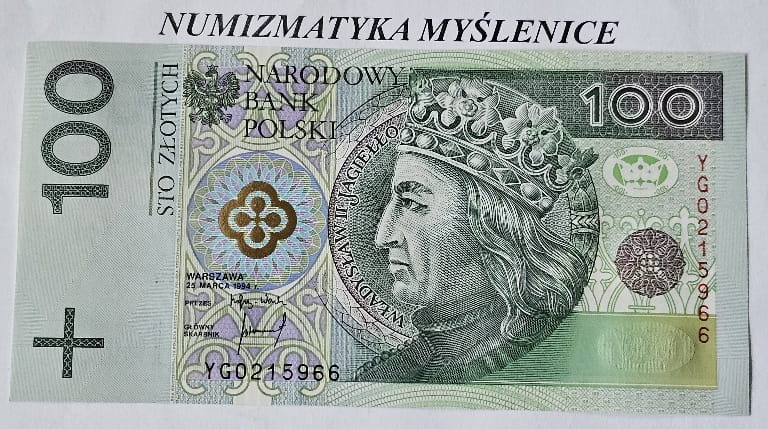 100 zł 1994 r Seria zastępcza YG 0215966 /St. 1 UNC /