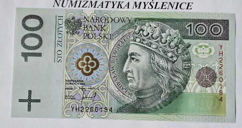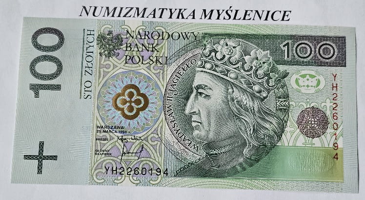 100 zł 1994 r Seria zastępcza YH 2260194 /St. 1 UNC /