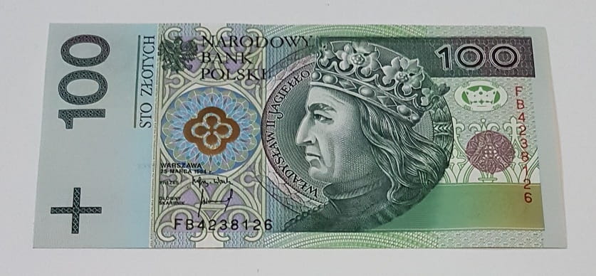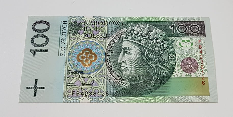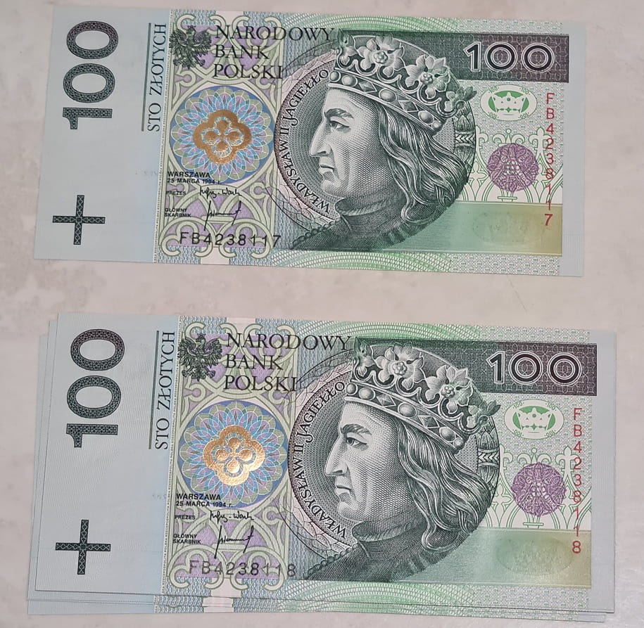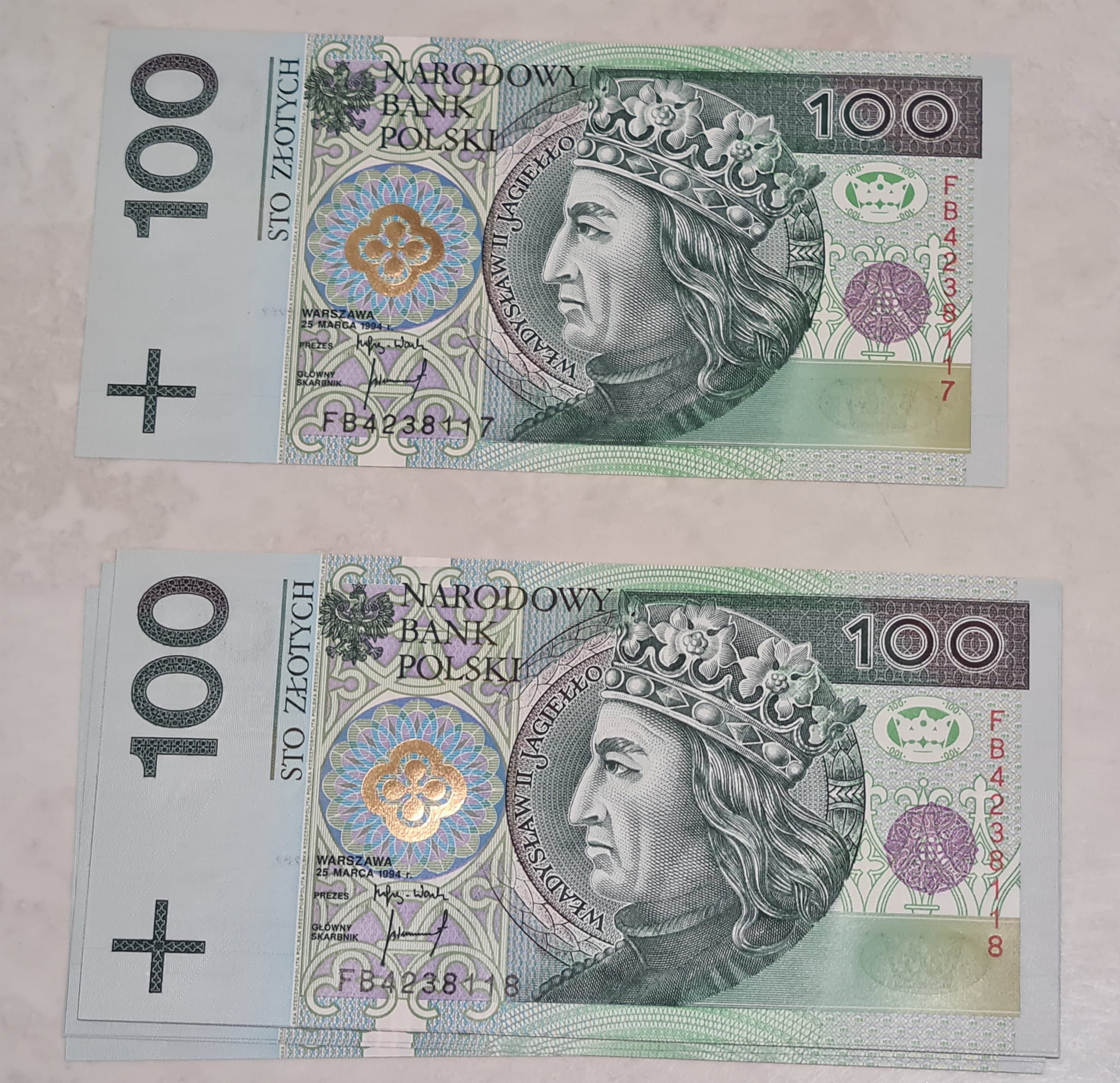 100 zł 1994 r.SERIA FB 4238121 ST.1 UNC