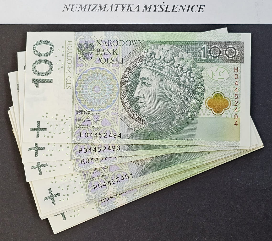 100 zł 2018 r. SERIA H0 44524.. ST.1 / UNC/