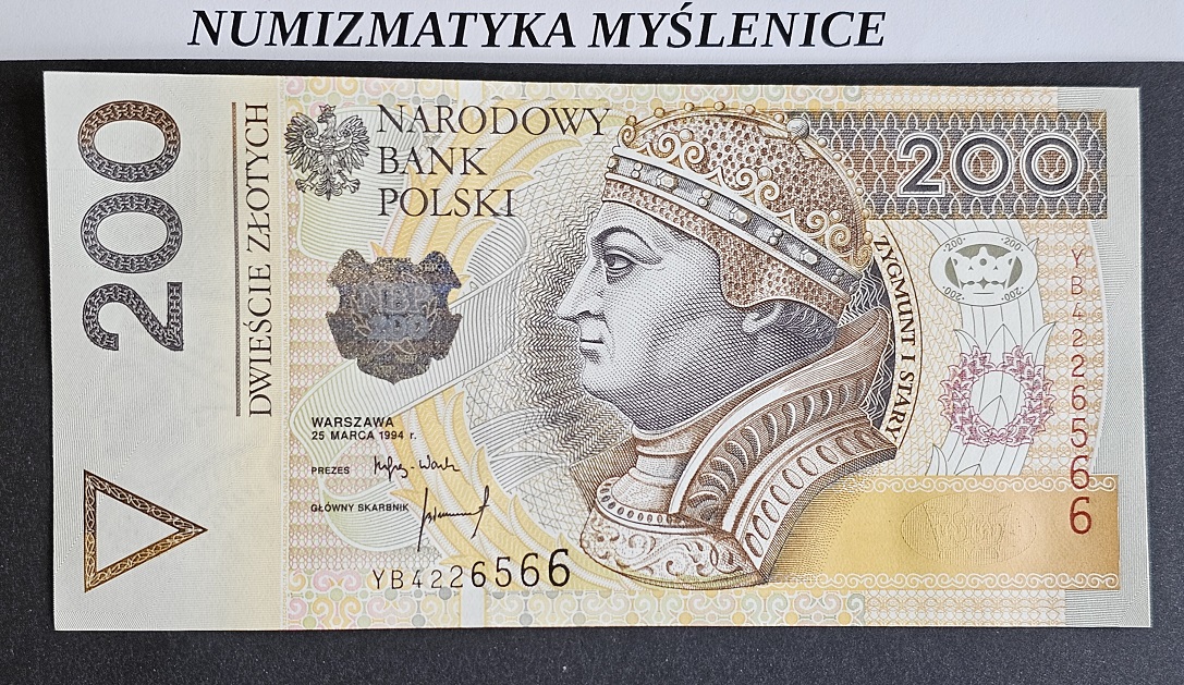200 ZŁ YB 4226566 - 1994 r RZADKA SERIA ZASTĘPCZA /UNC-/ (1)