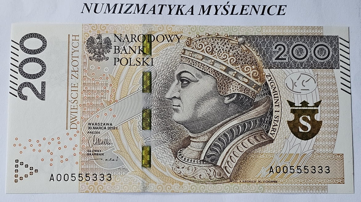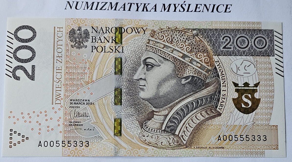 200 zł SUPER NUMER A00555333 St. /1 UNC/