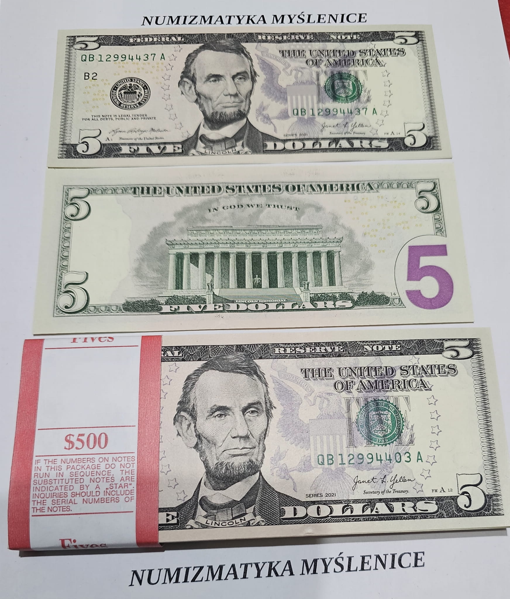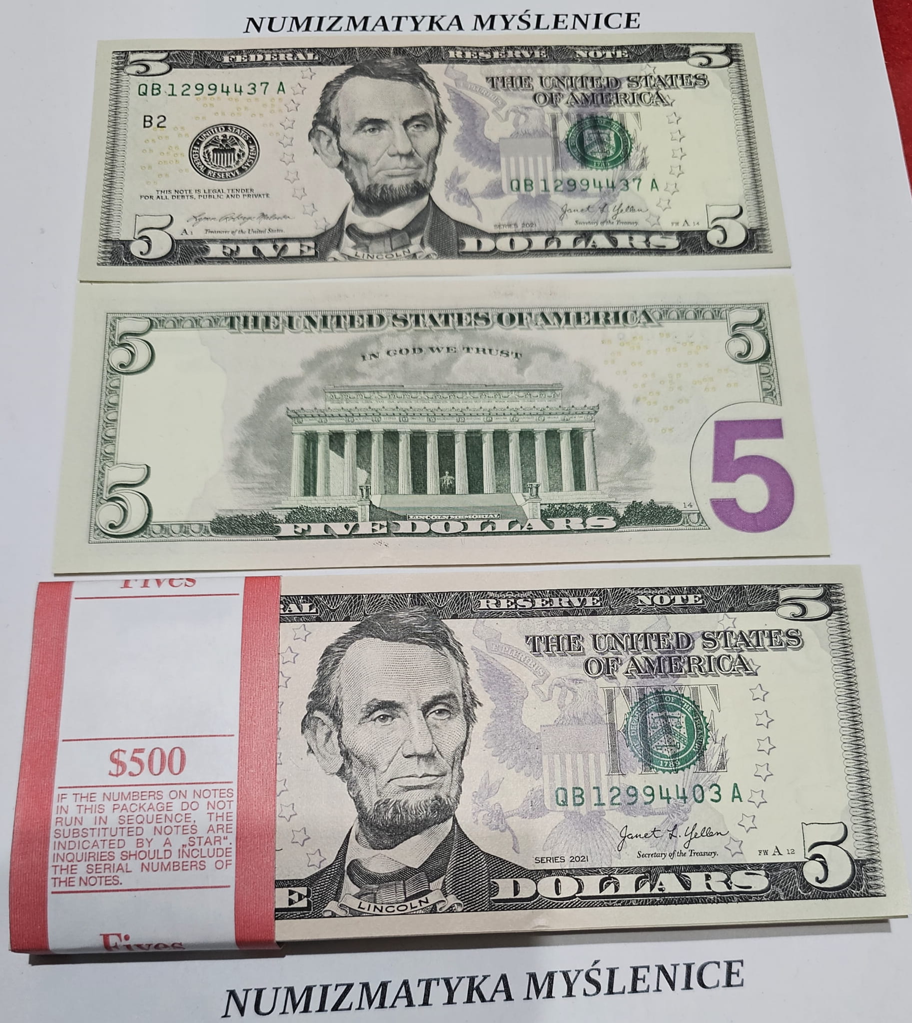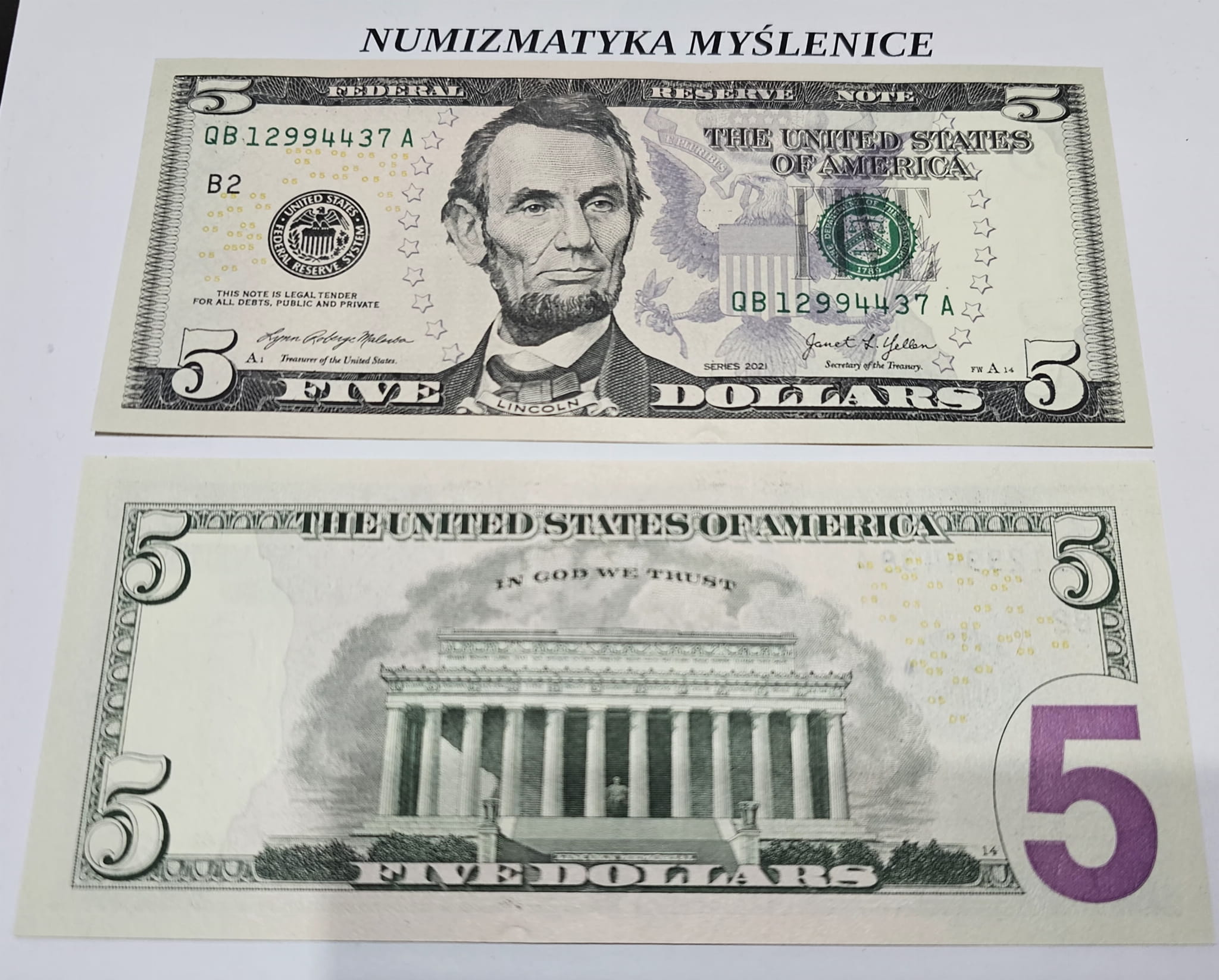 5 dolarów - najnowsze 2021 r SERIA QB 4385... A St 1 UNC !