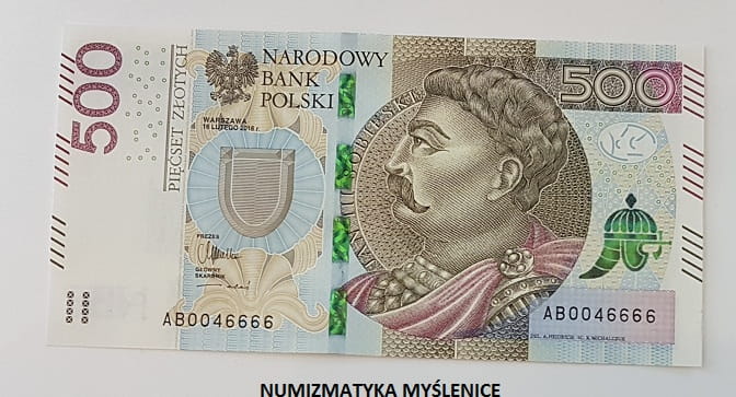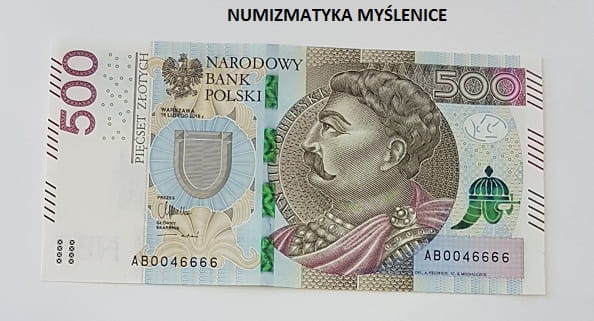 500 zł 2016 r SUPER NUMER AB 0046666 St. 1 /UNC /