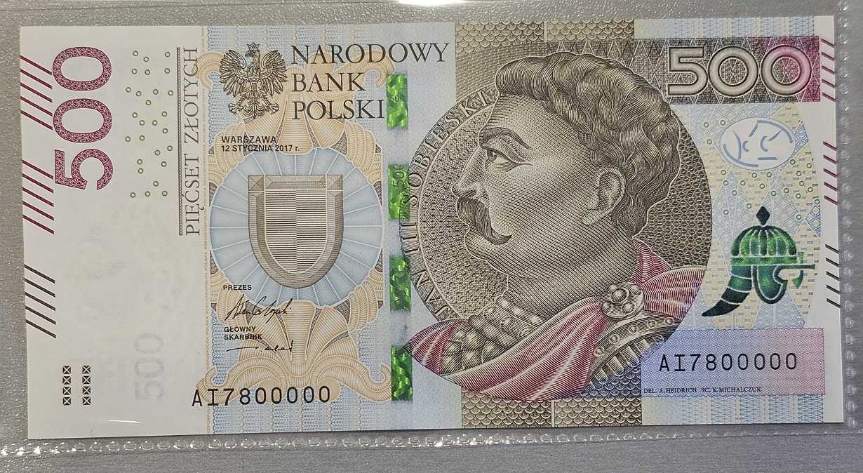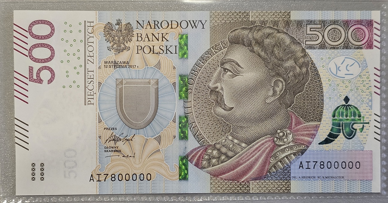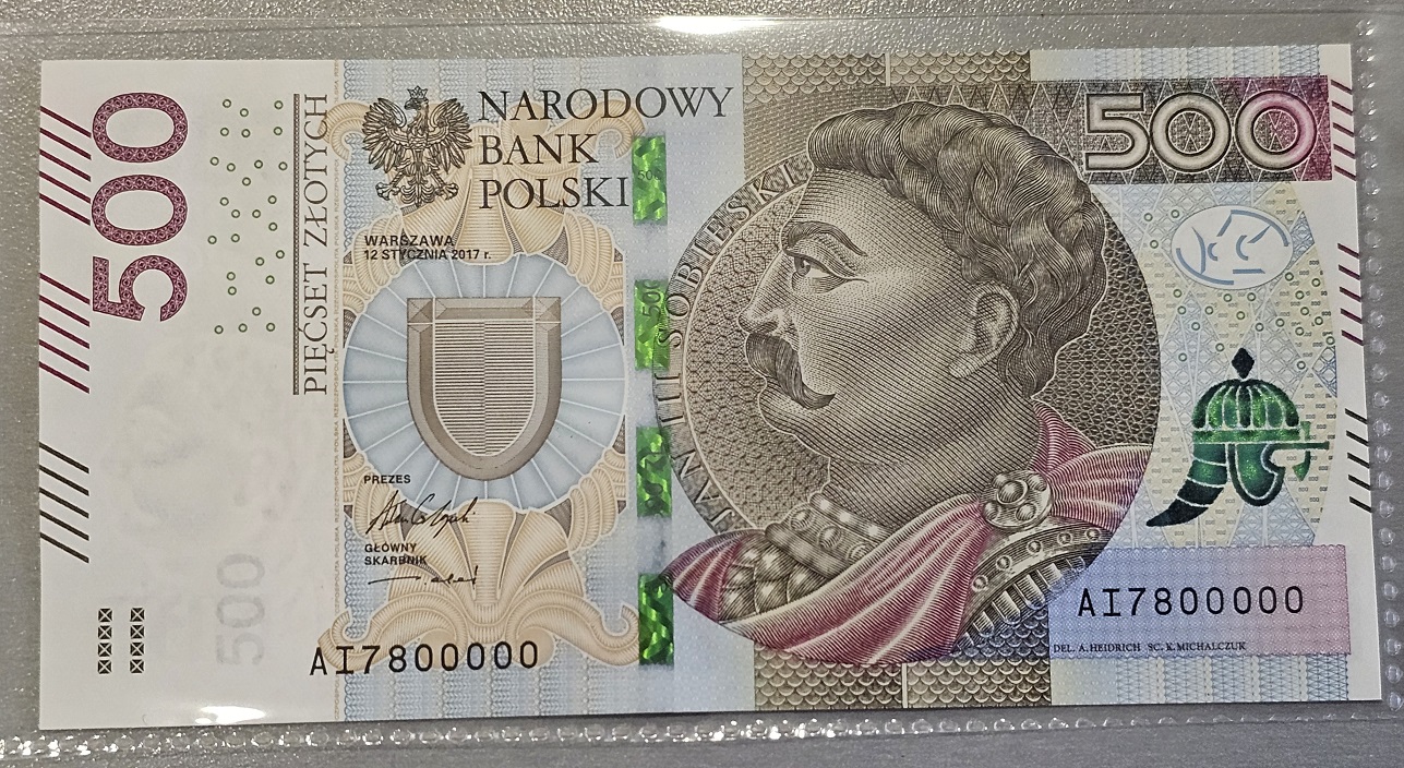 500 zł 2017 r SUPER NUMER AI 7800000 /St. 1 UNC /