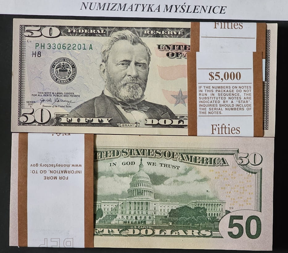 Paczka 100 szt - 50 DOLARÓW 2017 A SER PH - BANK OF ST LOUIS St 1/ UNC